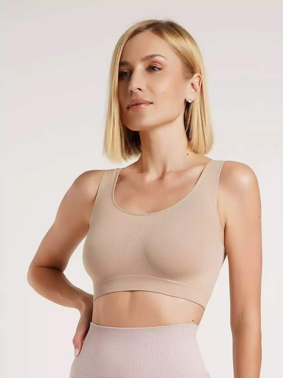 Жіночий короткий топ із широкими бретелями та круглим вирізом Giulia TANK TOP є максимально універсальнім, завдяки своїй розтяжності підходить для будь-якої фігури. А також він може бути як ідеальним елементом спідньої білизни - зручним та комфортним для щоденного носіння, і в той же час він може бути ідеальним вибором для літніх днів і активного відпочинку або навіть занять спортом, як предмет одягу. Виготовлений з м'якої мікрофібри, він швидко вбирає вологу та забезпечує відчуття свіжості, дозволяючи шкірі дихати. Топ має високу еластичність, що дозволяє йому зберігати свою форму і не деформуватися під час розтягування. Широка резинка внизу ефективно тримає топ на місці, не залишаючи слідів на шкірі і не спричиняючи дискомфорту, а анатомічна конструкція забезпечує гарну посадку на груди. При правильному догляді цей топ буде довго радувати своїм привабливим виглядом.