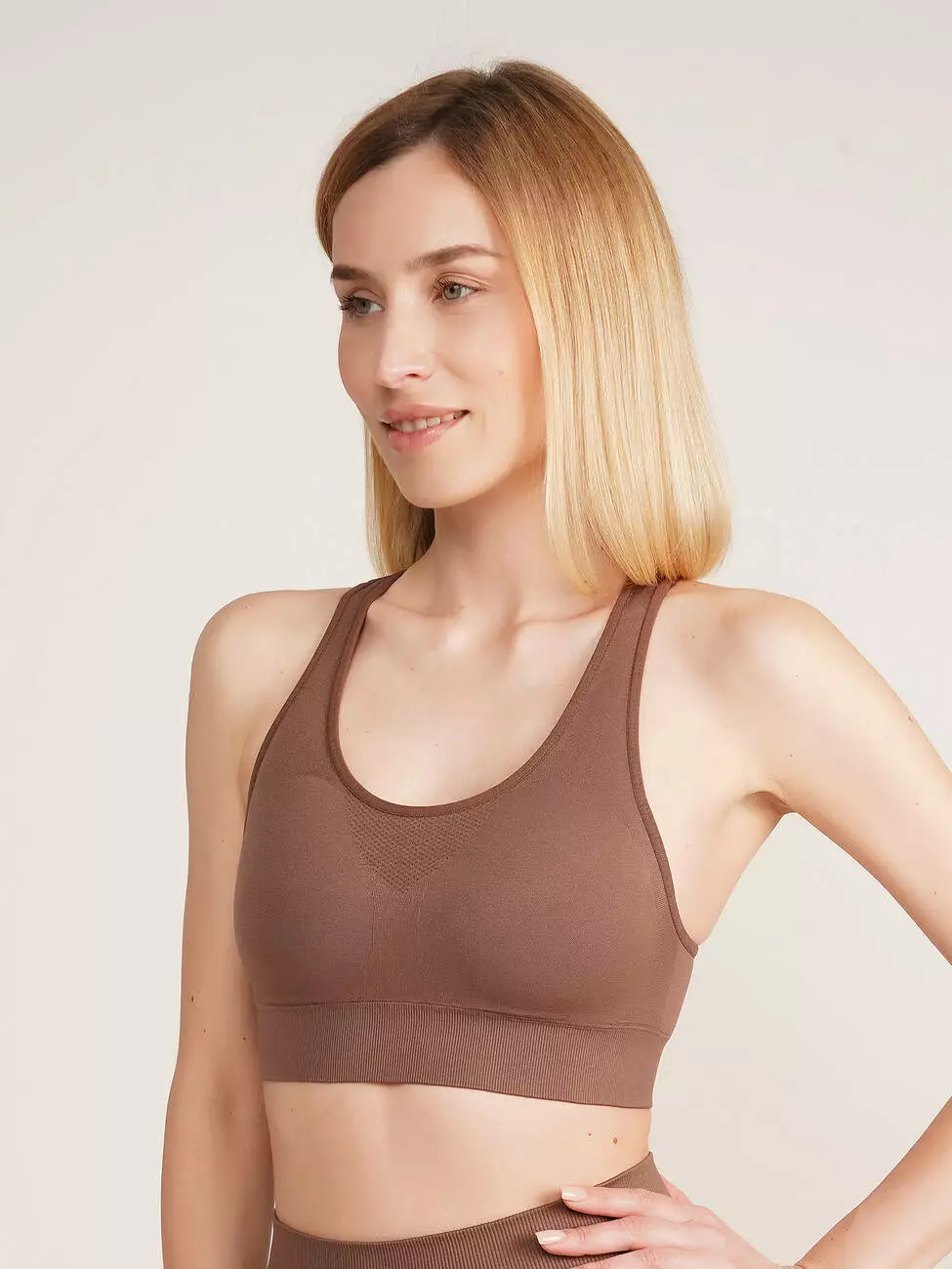 Спортивний топ виготовлений із тонкої та м'якої мікрофібри, що дарує відчуття комфорту та легкості. Широкі бретелі та еластична гумка під грудьми забезпечують надійну підтримку, а фігурна спинка не сковує рухів під час тренувань. У топі передбачена можливість додати чашечки відповідно до розміру та форми грудей (чашечки не входять до комплекту). Стильний дизайн робить цю модель універсальною як для спортивних занять, так і для повсякденних образів.