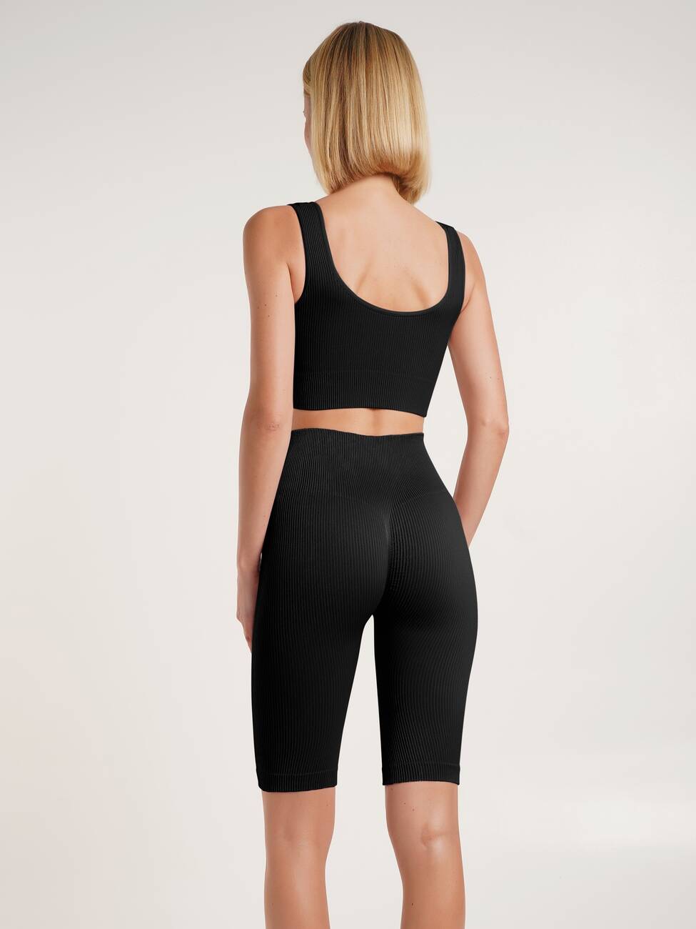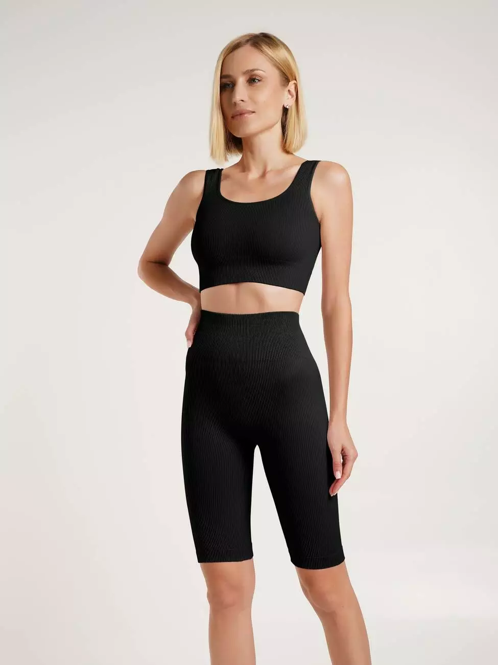 Велосипедки Giulia TRACKS RIB SHAPE створені для сучасних жінок, які не компромітують зручність і стиль. Виготовлені з мікрофібри в рубчик безшовною технологією, вони ідеально підходять як для інтенсивних тренувань, так і для повсякденних прогулянок. Велосипедки з високою посадкою забезпечують додаткову підтримку, а широкий еластичний пояс не лише фіксує їх на талії, а й акцентує жіночну лінію, надаючи талії більш виразної форми. Спеціальний моделюючий шов з ефектом пуш-ап підтягує силует, надаючи додаткового об'єму і роблячи фігуру більш привабливою і виразною.