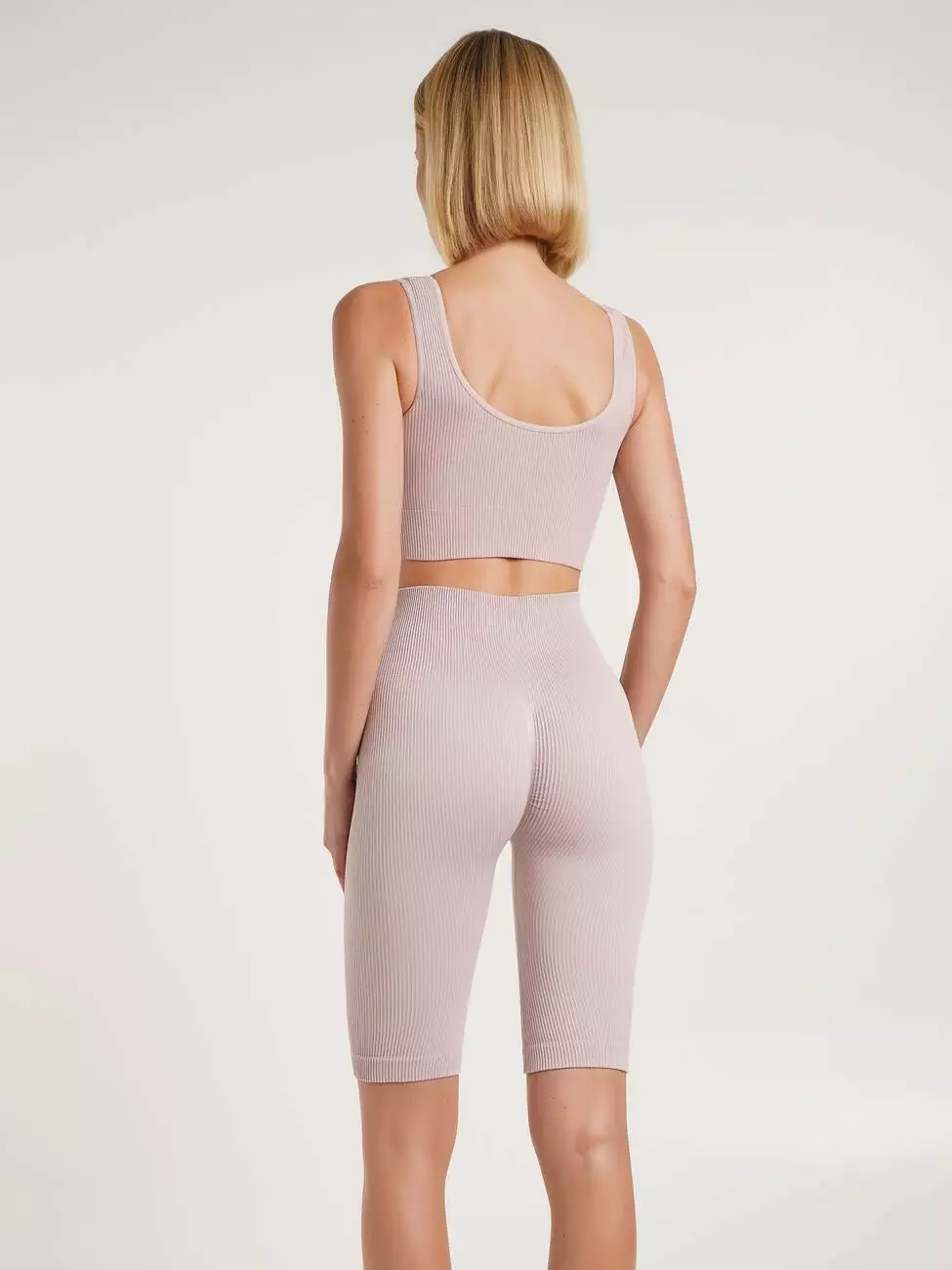 Велосипедки Giulia TRACKS RIB SHAPE створені для сучасних жінок, які не компромітують зручність і стиль. Виготовлені з мікрофібри в рубчик безшовною технологією, вони ідеально підходять як для інтенсивних тренувань, так і для повсякденних прогулянок. Велосипедки з високою посадкою забезпечують додаткову підтримку, а широкий еластичний пояс не лише фіксує їх на талії, а й акцентує жіночну лінію, надаючи талії більш виразної форми. Спеціальний моделюючий шов з ефектом пуш-ап підтягує силует, надаючи додаткового об'єму і роблячи фігуру більш привабливою і виразною.
