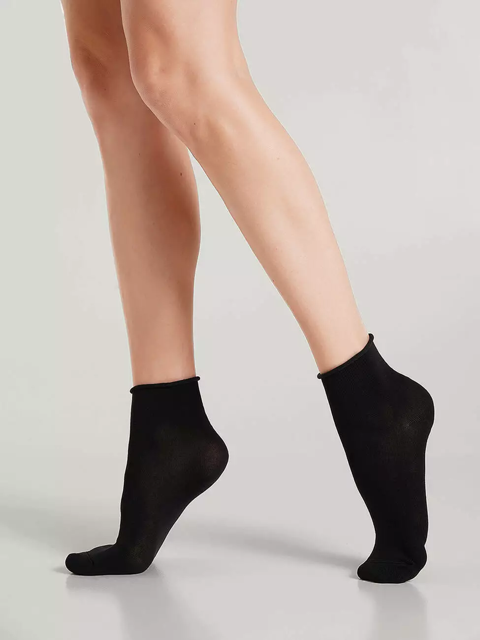 Жіночі шкарпетки без гумки створені для максимального комфорту. Вони м'які, повітропроникні та ефективно зберігають ноги сухими. Акуратний скатаний край не лише зручний, а й витончено доповнить будь-який стиль.